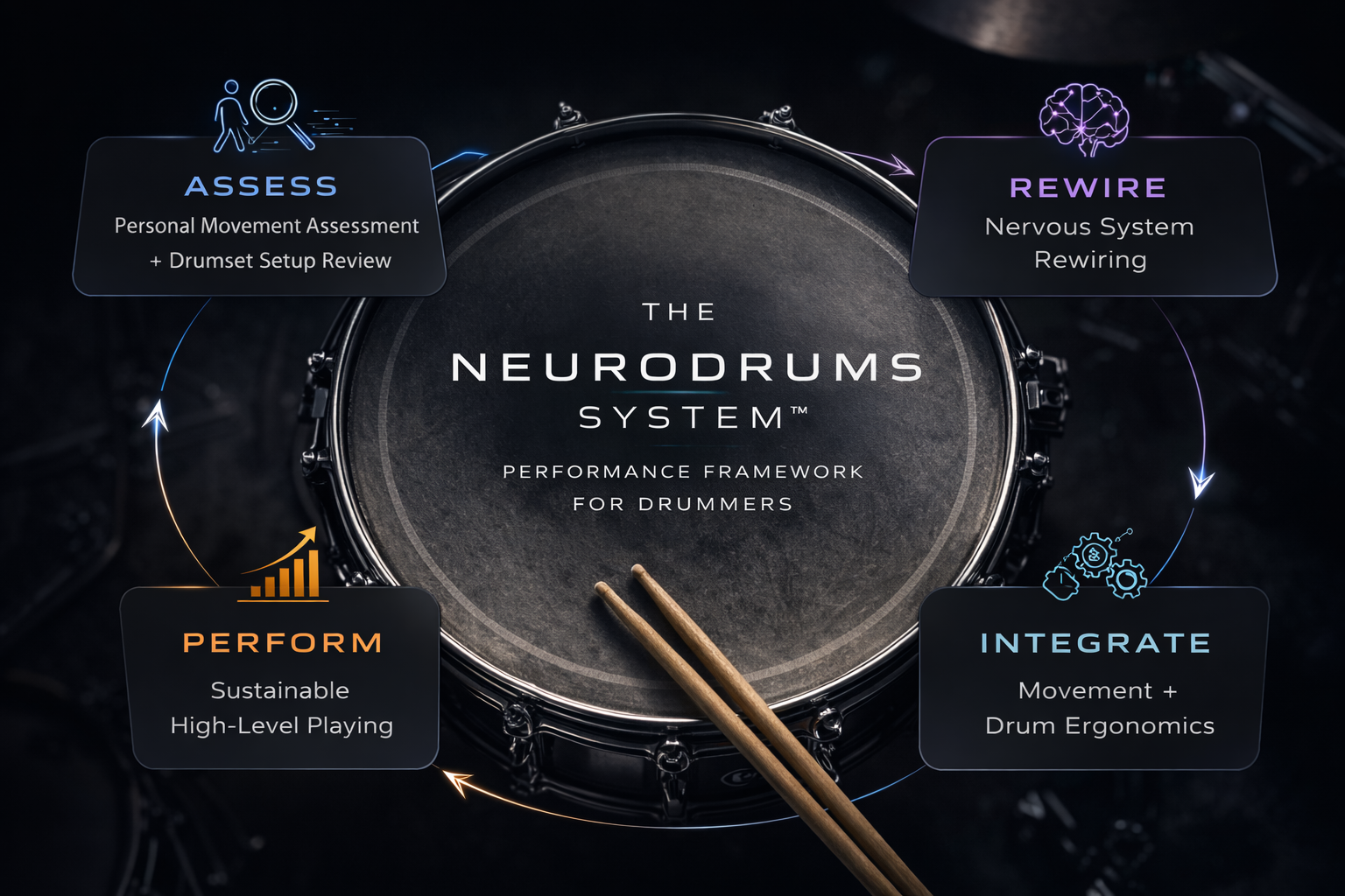 The Neurodrums System™ is a neuromechanics-based performance coaching framework built exclusively for drummers who want to eliminate hidden physical limitations and build durable, high-level performance capacity.